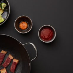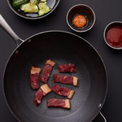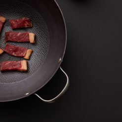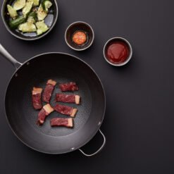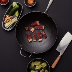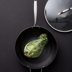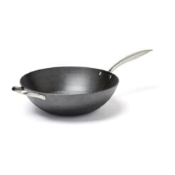 Wokpanne laget av lett støpejern. Med glasslokk og uten kjemiske poly-stoffer og PFAS-er. Stekepanne laget av lett støpejern uten kjemiske poly-stoffer og PFAS-er. Overflaten er behandlet med en naturlig plantebasert olje som skaper en utmerket slipebelegg-effekt. Det kan hende du må vedlikeholde denne effekten ved å smøre pannen mellom bruk. Pannen må ikke vaskes med vaskemiddel – kun med varmt vann. Tørk den deretter umiddelbart med tørkepapir. Wokpannen kombinerer de fantastiske egenskapene til en støpejernspanne, men med 50 % lavere vekt. Leveres i gaveeske.