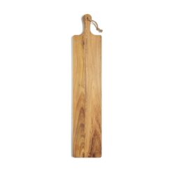 Robust og veldig praktisk skjære- / serveringsbrett som takket være lengden på 75 cm og en bredde på 15 cm har en stor nok overflate for å både skjære og servere. Brettet er laget av FSC-sertifisert teak og har en vakker gylden til mellombrun treflate som mørkner over tid. Det høye oljeinnholdet gir brettet en kraftig beskyttelse mot råte, og holder det i god stand i lang tid. Størrelse: 75 x 15 x 1,8 cm. Leveres i gaveeske.