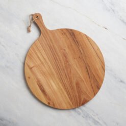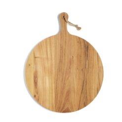 Høykvalitets rundt skjærebrett som på grunn av sin store størrelse og dekorative design også kan brukes til servering. Et nyttig håndtak forenkler håndtering og servering ytterligere. Brettet er laget av FSC-sertifisert teak og har en vakker gylden til mellombrun treflate som mørkner over tid. Det høye oljeinnholdet gir brettet en kraftig beskyttelse mot råte, og holder det i god stand i lang tid. Størrelse: 51 x 40 x 1,8 cm. Leveres i gaveeske.