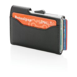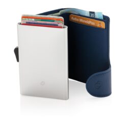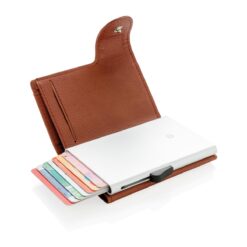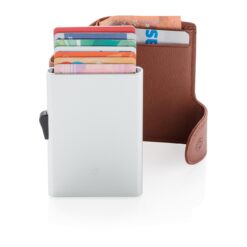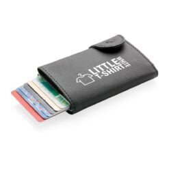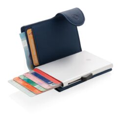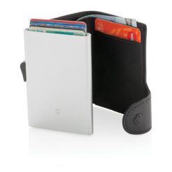 Solid aluminium kortholder beskytter dine viktige kort mot elektronisk tyveri. Nå er det slutt på knekte og bøyde kort. Holder opp til 7 normale, eller 5 pregede kort. Enkel skyvemekanisme på siden dytter kortene opp. Lommeboken kan også oppbevare kontanter.