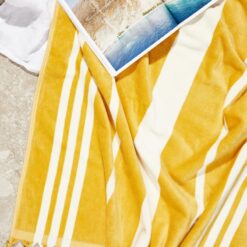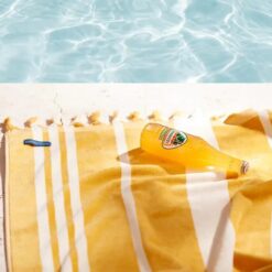 Badelaken i velur som er laget av 100 % økologisk bomull (GOTS) Håndkleet er perfekt å ta med på stranden eller til bassenget og gjør opplevelsen din spesiell.