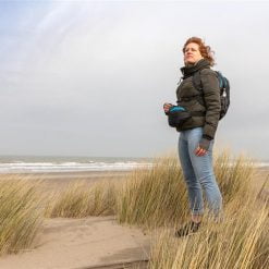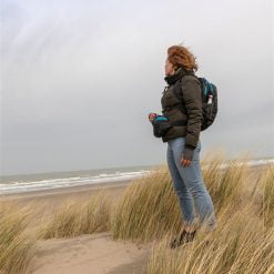 Midjevesken er en perfekt reisevenn til korte turer i skog og fjell hvor alt du trenger å ta med deg er vann og noen småsaker. Vesken har en lomme foran i mesh til drikkeflasken, og nok plass i hovedrommet til de nødvendigste ting. PVC fri.