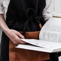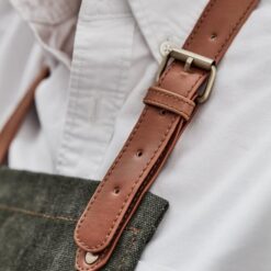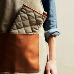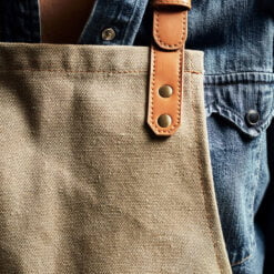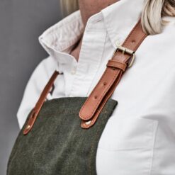 Robust forkle av steinvasket kanvas 450 g/m2 med detaljer av kunstskinn. Et forkle med lang livslengde som bare blir finere med tiden.