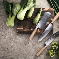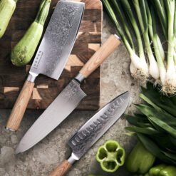 Denne kokkekniv er ideell for å kutte kjøtt og hakke større grønnsaker og urter. Det robuste pakkawood-håndtaket er ergonomisk utformet, noe som gjør kniven enkel og behagelig å bruke. Dette betyr at du kan jobbe med kniven over lengre tid, uten at hånden blir sliten. Bladet har en utrolig hard kjerne bestående av 67 lag med støpt VG10-stål. Resultatet er et slitesterkt blad med utrolig skarphet og utmerket skjæreytelse. Leveres i magneteske.