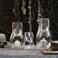 Maria Berntsens ‘Design with Light’ lanterner i glass er skapt for å kaste et flott lys i dine omgivelser, uansett hvor du plaserer dem. Med glass og lær har serien et rent, skandinavisk uttrykk og fungerer som en mobil lyskilde året rundt. Bruk lanternerne på terrassen, i vinduet, på gulvet eller ta de med til bords. ‘Design with Light’ er skapt til både uteliv og innendørshygge – men skal bo inne av hensyn til lærhanken.