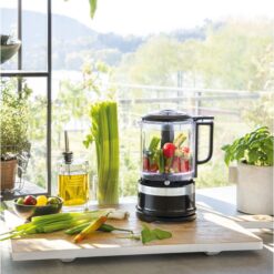 Minihakker med den perfekte størrelse til hverdagsbruk. Hakker rå frukt, grønnsaker, nøtter, persille, purreløk, hvitløk etc. Blander og purerer kokt frukt eller grønnsaker. Lager rasp og hakker kjøtt. Rører og pisker. Arbeidsskål, multifunksjonelt knivblad og pisk kan vaskes i oppvaskmaskin.