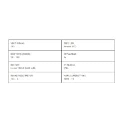 Dette er en meget kompakt, oppladbar håndlykt med opp til 1000 lumen. På laveste lysstyrke varer batteriene i hele 144 timer. Dette er en solid og lyssterk lykt som passer for alle som er mye utendørs og i aktivitet. Lykten kan brukes med oppladbare Li – ion batterier (medfølger) og den lades via USB 3.0 – kabel. Lykten gir enkel oversikt over lade-/batteristatus. Lykten lades opp på 6 timer.