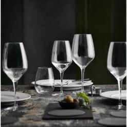 8 stk. Merlot rødvinsglass, 70 cl og 8 stk. Riesling hvitvinsglass, 44 cl.