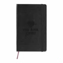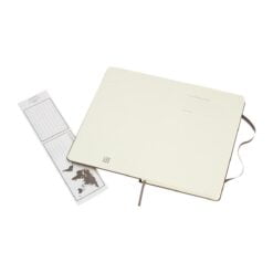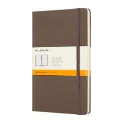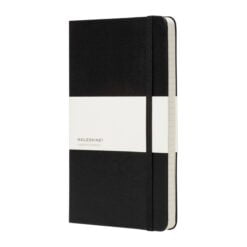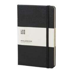 Moleskine Classic (13×21 cm) notatbok med et stivt omslag av papp har avrundede hjørner, syrefritt papir, et bokmerke av bånd og elastisk lukking. På den første siden er det plass til å skrive ned et notat med en belønning til finneren, i tilfelle du mister den. På bakdekslet er det festet en utvidbar indre lomme som inneholder Moleskine-historien. Lommen kan brukes til løse papirer og notater. Inneholder 240 linjerte sider i elfenbensfarge. Tilgjengelig i et bredt spekter av stilige, levende farger. Kunstpapir.