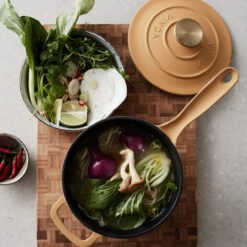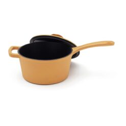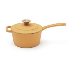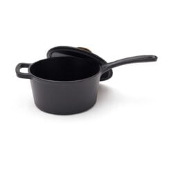 En nydelig gryte fra Monte-serien. Støpejernets utmerkede varmekapasitet gjør det ideelt for sauser, supper og baking. Dessuten har den en tykk bunn slik at innholdet ikke brenner seg så lett. Den har et svart emalje på innsiden med større porer og en litt røffere overflate. Over tid fylles porene med olje og former et slipebelegg, akkurat som med støpejern. Egnet for alle kokeplatetyper, også induksjon. 1,9 Liter, størrelse: 36,8 x 19 x 12,5 cm. Leveres i gaveeske.