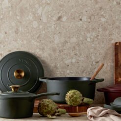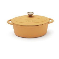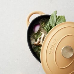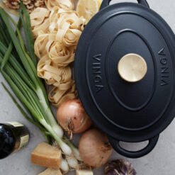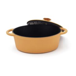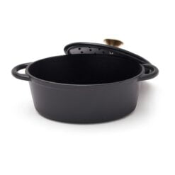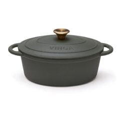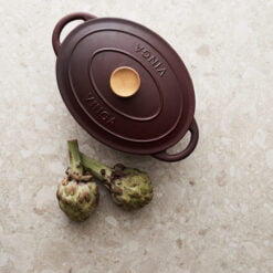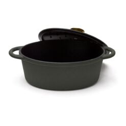 En klassisk støpejerngryte i Monte-serien. Støpejernets utmerkede varmekapasitet gjør den ideell for gryteretter og langsom matlaging. Dessuten har den en tykk bunn slik at innholdet ikke brenner seg så lett. Lokket har små pigger som muliggjør jevn og skånsom fordeling av vanndampen fra kondens over innholdet – en selvpenslende funksjon. Den har et svart emalje på innsiden med større porer og en litt røffere overflate. Over tid fylles porene med olje og former et slipebelegg, akkurat som med støpejern. Egnet for alle kokeplatetyper, også induksjon. 3,5 Liter, Størrelse: 27 x 21 x 15 cm. Leveres i gaveeske.