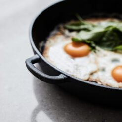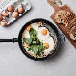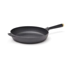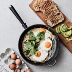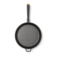 Stekepanne i støpejern med et håndtak laget av svart tre. Pannen har en maskinprodusert bunn som gjør den jevn og glatt. Det gir de beste forholdene for jevn varmefordeling. Materialet i seg selv har en god evne til å spre varmen jevnt. Denne pannen blir bare bedre etterhvert, og hvis du tar vare på den vil den kunne vare i flere generasjoner. Fungerer på alle typer komfyrer inkludert induksjonskomfyrer. Størrelse: 28,5 x 28,5 x 6 cm. Leveres i gaveeske.
