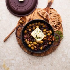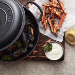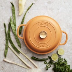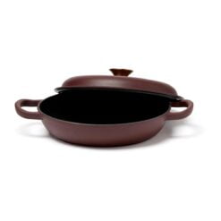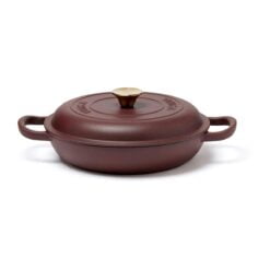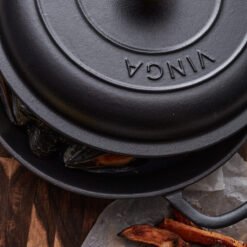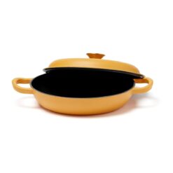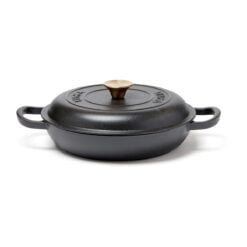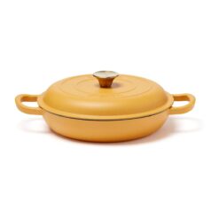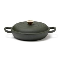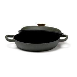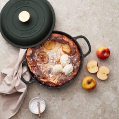 En sauterpanne av støpejern i Monte-serien med flere bruksområder. Perfekt til steking, små gryteretter og sauser. Også en utmerket ovnsform. Støpejern har en utmerket varmekapasitet. Den gryten har også en tykk bunn slik at innholdet ikke brenner seg så lett. Lokket har små pigger som muliggjør jevn og skånsom fordeling av vanndampen fra kondens over innholdet – en selvpenslende funksjon. Den har et svart emalje på innsiden med større porer og en litt røffere overflate. Over tid fylles porene med olje og former et slipebelegg, akkurat som med støpejern. Egnet for alle kokeplatetyper, også induksjon. Størrelse: 27 x 27 cm. Leveres i gaveeske.
