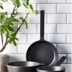 Godt utstyr gir større arbeidsglede, og fornøyelsen vokser med Morsøs gryteserie av støpt aluminium. Aluminium er lett, og samtidig et av de mest varmeledende materialene. Og her går de gode kokeegenskapene hånd i hånd med stilren skjønnhet. Kasserolle 1,8 l, gryte 3,4 l og sautépanne 24 cm. Pannen har høy kant og håndtak av bakelitt, akkurat som kasserollen. Innvendig trelags non stick-belegg som reduserer risikoen for at maten brenner seg fast, og beskyttende utvendig belegg som forenkler rengjøringen. Du kan også kjøpe glasslokk til (ta kontakt for tilbud). Design Klaus Rath.