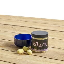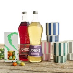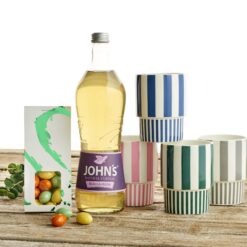 Geo krukke med lokk Ø8 cm – mint; Mixede lakriskuler m/sjokolade 100 g.; pakket i cellofanpose m/sølv sløyfe
