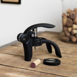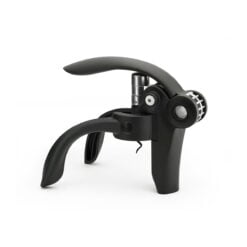 Med løftearm og folieskjærer av svart ABS-plast / rustfritt stål. Et oppfinnsomt og sofistikert mekanisk verktøy som passer til alle flasketuter, og som plasserer seg trygt rundt flasken, slik at korken kan trekkes ut helt uanstrengt. Laget av solid og lett materiale, med ergonomisk design.