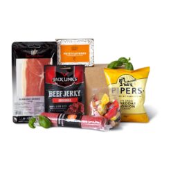 Hjort: Hjort, svinetunge, svinehjerte, får, spekk, salt, svineprotein, krydder, fargestoff (E120), sukker, konserveringsmiddel (E250).
