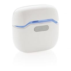 Studier viser at den gjennomsnittlige øreproppen inneholder flere bakterier enn et skjærebrett. Likevel blir øretelefoner tatt inn og ut av øret flere ganger om dagen mens de inneholder forskjellige bakterier, uten at man rengjører dem. Disse TWS-øretelefonene med unikt design rengjøres med UV-C-lys i ladeetuiet og eliminerer opptil 99,9 % av bakteriene som finnes på øreproppene. Øretelefonene bruker BT 5.0 for enkel automatisk paringstilkobling og lavt energiforbruk. Øretelefonene tillater en spilletid på tre timer og kan lades på nytt i 400 mAh-ladeetuiet. Rekkevidde på opptil ti meter. UV-C-bølgelengde 270–280 nm. For å unngå UV-C-eksponering for brukeren, vil UV-C-funksjonen bare fungere når ladeetuiet er lukket. Inkludert ett ekstra par ørepropper. Inkludert mikroladekabel av PVC-fritt TPE-materiale.