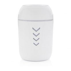 Luftfukter laget av slitesterk ABS med integrert internt UV-C-lys som ser bra ut på hvilken som helst bordplate. Luftfukteren vil produsere fuktighet for å holde ethvert boareal sunt med optimal luftkvalitet. Om vinteren vil den sørge for at det blir mindre tørr luft, og om sommeren har den en avkjølingsfunksjon. Dysen produserer veldig lite lyd, så den kan til og med brukes om natten. Det integrerte UV-lyset vil drepe opptil 99,9 % av potensielle skadelige bakterier i vannet før det forstøves. Inkludert to ekstra bomullspinner for å erstatte den originale. Én bomullspinne vil vare opptil åtte måneder med permanent bruk. Innhold: 200 ml som må fylles på etter fire timers bruk. UV-C-bølgelengde 270–280 nm. UV-C-lys aktiveres bare når enheten er lukket. Inkludert 120 cm PVC-fri TPE-mikroladekabel.