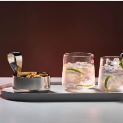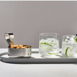 Fyll den lille skålen med peanøtter, cashewnøtter eller salte mandler, og server dem til yndlingsdrinken din. Og hvis du elsker oliven, tørkede tomater eller andre godbiter i olje, kan du glede deg over at hullet i den fine skjeen som følger med, slipper ut oljen før snacksen havner på tallerkenen (kun på Large). Bon appétit!