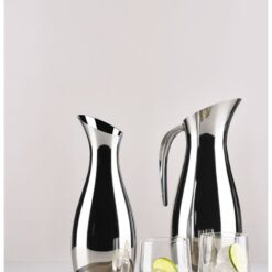 Eksklusiv, blankpolert stålkanne i stilren og moderne design. Toppen har et avtakbart isfilter som sørger for at isbitene, lime- eller sitronbåtene holder seg på plass når du heller. Laget av 18/8-stål. Høyde 30 cm og 12 cm i diameter.